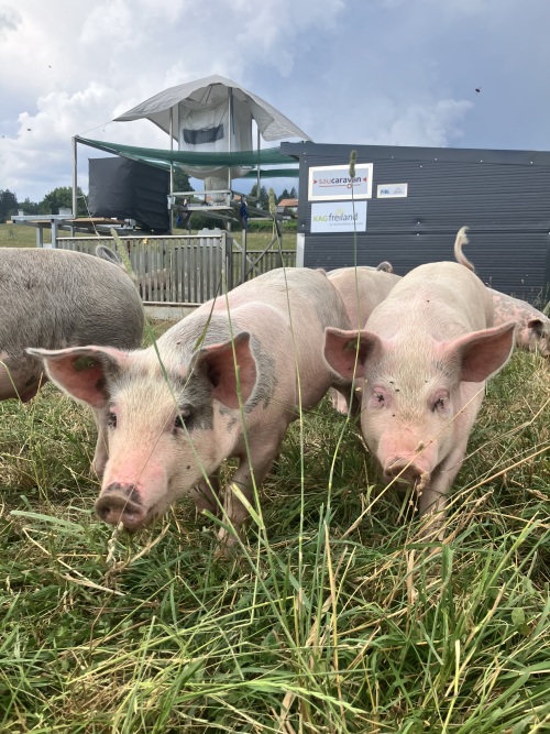 Die Freilandschweine vom Biohof Küttigkofen leben mit dem Sau Caravan glücklich im Freien. Sie wachsen zusammen mit ihren Geschwistern in einem Wurf auf. Durch die Freilandhaltung können die Schweine ihren natürlichen Wühltrieb und ihr Sozialverhalten artgerecht ausüben. Die tägliche Bewegung und das stressfreie Leben, sowie Futter in Bioqualität ergeben eine hervorragende Fleischqualität.