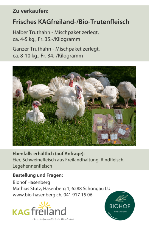 Der nächste Verkauf von Mischpaketen findet am 24. September 25 statt. Bestellungen nimmt der KAGfreiland/Biohof Küttigkofen gerne laufend entgegen.