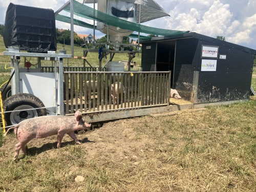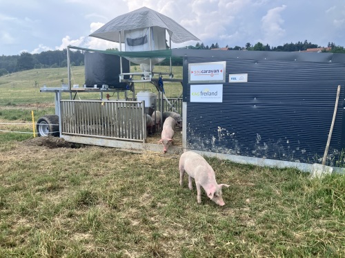 Die Freilandhaltung von Schweinen ist die tierfreundlichste Haltungsform. Sie ist allerdings noch eine absolute Nische in der Schweiz. Der Boden wird durch die Freilandhaltung intensiv beansprucht und beschädigt. Dies stellt insbesondere bei schlechtem Wetter ein Problem für das Management aber auch für den Gewässerschutz dar. Die Schweiz birgt allerdings als Land mit viel Dauergrünland ein grosses Potential für die Freilandhaltung von Schweinen. Dieses Potential kann jedoch nur genutzt werden, wenn der Boden dabei nicht beschädigt wird. Es braucht somit Lösungen, welche die Haltung von Schweinen auf Dauergrünland ermöglichen, ohne die Grasnarbe zu zerstören. Eine solche Lösung bietet der Sau Caravan. Mit dem Sau Caravan werden Schweine im Freiland gehalten und der Boden wird trotzdem geschont. Der Sau Caravan besteht aus einer Plattform, auf welcher alle stark genutzten Bereiche wie Tränke, Futterautomat, Liegebereich und Suhle angebracht sind. Durch Spalten im Boden können Fäkalien direkt auf die Wiese fallen, ohne Trittbelastung. Der Sau Caravan kann mit dem Traktor einfach umplatziert werden, was ein regelmässiger Wechsel der Weide ermöglicht. So werden die Schweine nicht zu lange auf einer Fläche gehalten und der Boden wird geschont. Bisher wird der Sau Caravan nicht serienmässig produziert und eingesetzt. Dies ist mit den Kosten für den Bau und dem fehlenden Wissen zum optimalen Einsatz zu erklären. Um dieses Wissen aufzubauen, wird im Projekt die Anwendung des Sau Caravans untersucht. Dazu wird der Sau Caravan auf dem KAGfreiland-Betrieb «Biohof Küttigkofen» von Claudia und Matthias Zimmermann eingesetzt. Der Betrieb hält bereits Schweine im Freiland und möchte nun den Sau Caravan als neues Haltungssystem gemeinsam mit KAGfreiland und dem FiBL testen. Dazu wird der Sau Caravan während zwei Jahren auf dem Betrieb angewendet. Verschiedene Parameter bezüglich Grasbewuchs, Boden sowie Tierwohl und Tiergesundheit werden erhoben und untersucht. Zudem wird die tägliche Arbeit mit dem Sau Caravan laufend festgehalten und mit dem Betrieb vor Ort diskutiert. Die Erkenntnisse aus dem zweijährigen Versuch sollen zudem in die Praxis gebracht werden. Dazu werden ebenfalls ein Merkblatt sowie ein Video erstellt. So erhalten interessierte Betriebe Informationen dazu, wie der Sau Caravan optimal eingesetzt werden kann. KAGfreiland wird laufend über den Stand des Projektes informieren.