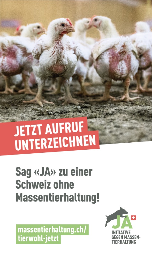 Wir fordern: Tierwohl JETZT! Unterzeichne den Aufruf und sag «JA» zu einer Schweiz ohne Massentierhaltung!